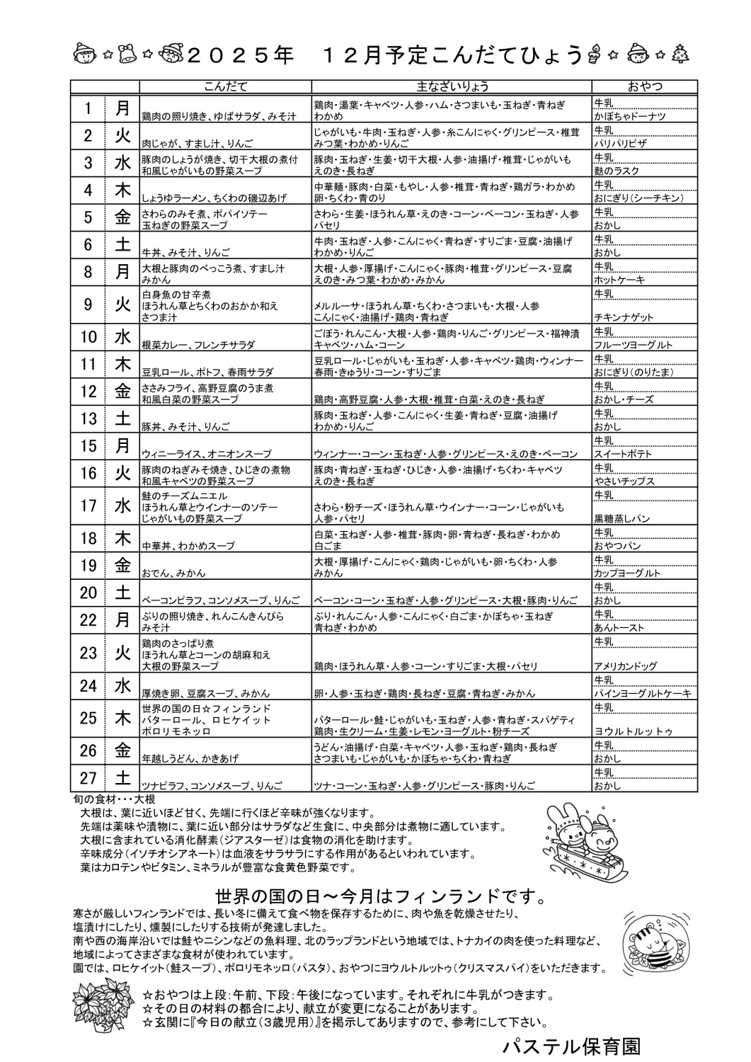パステル保育園では、徹底した衛生管理のもとで、手作りの給食を提供しています。